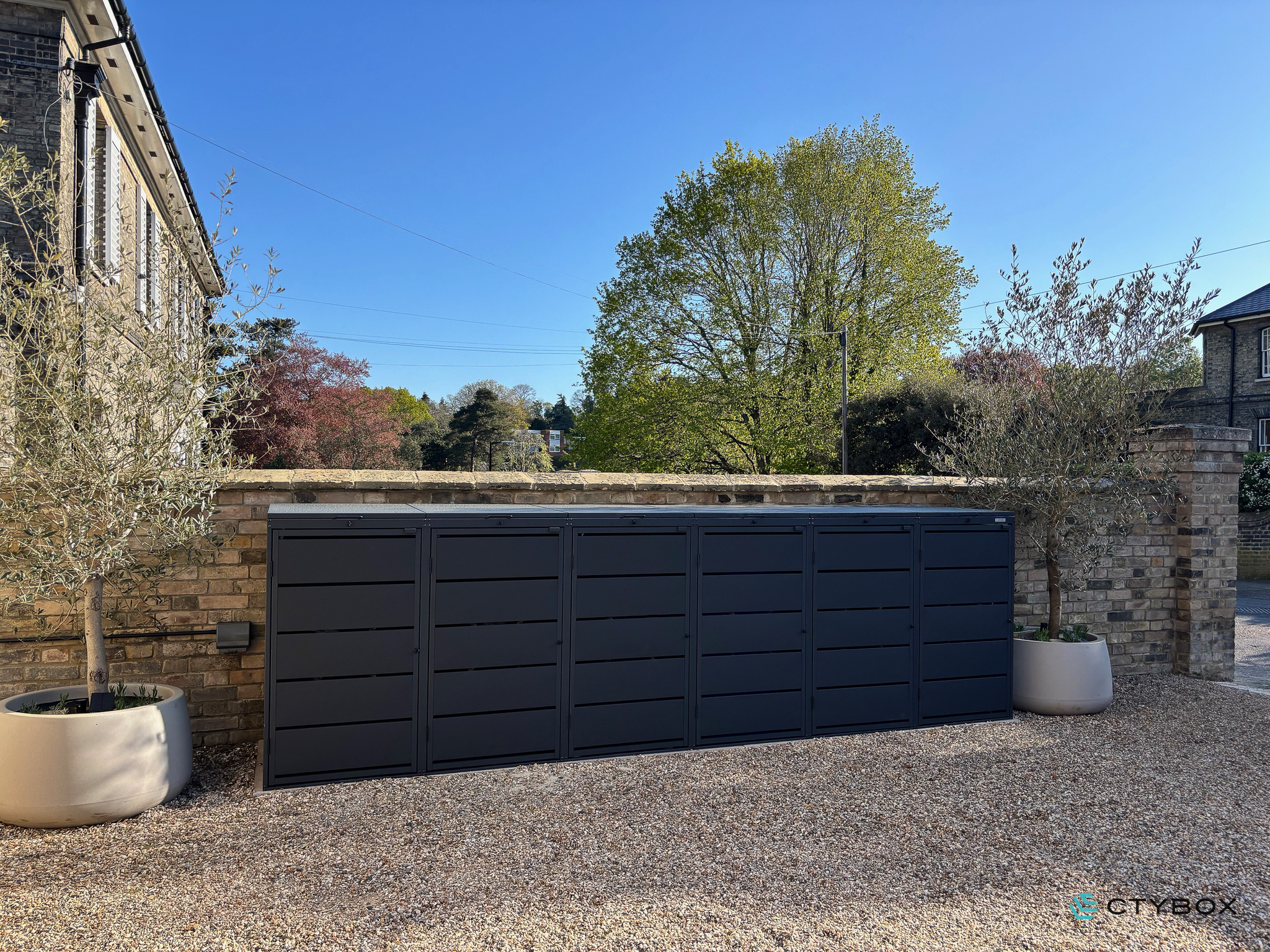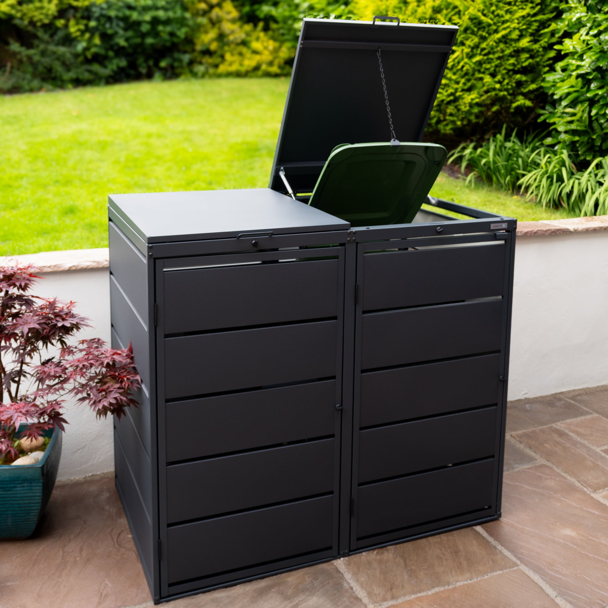 The Loft – Minimalistic bin store is a discreet and elegant solution for keeping your outdoor space tidy. Crafted from high-quality, powder-coated galvanised steel, it combines minimalist design with outstanding durability. Weatherproof, secure and beautifully finished, it's built to look good for years to come – whatever the British weather throws at it.