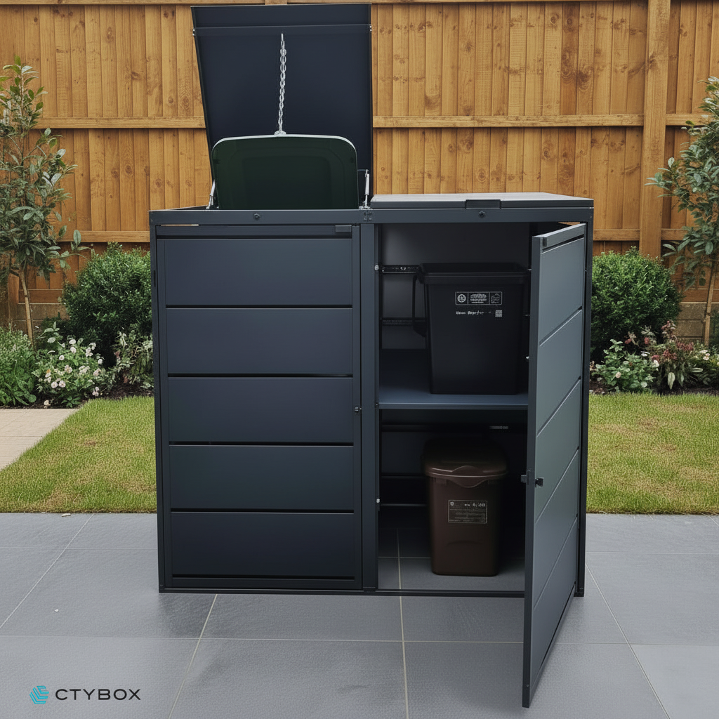 - Designed to accommodate up to 240-litre wheelie bins