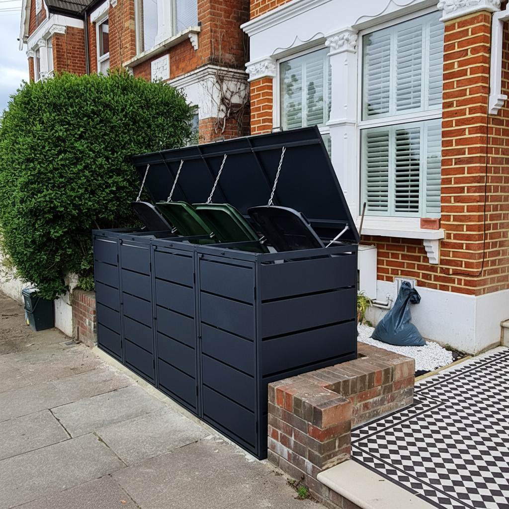 - Modern, premium alternative to budget metal, plastic and wooden bin stores that degrade quickly outside