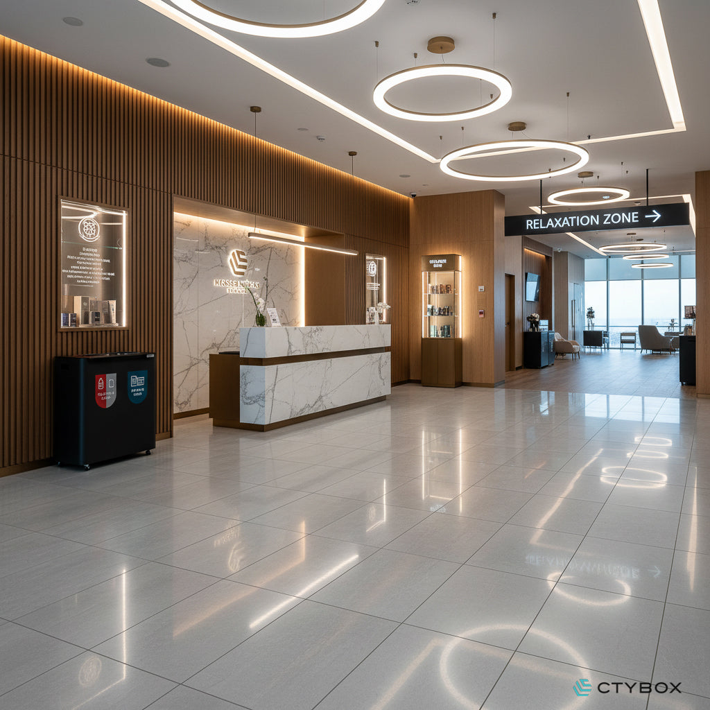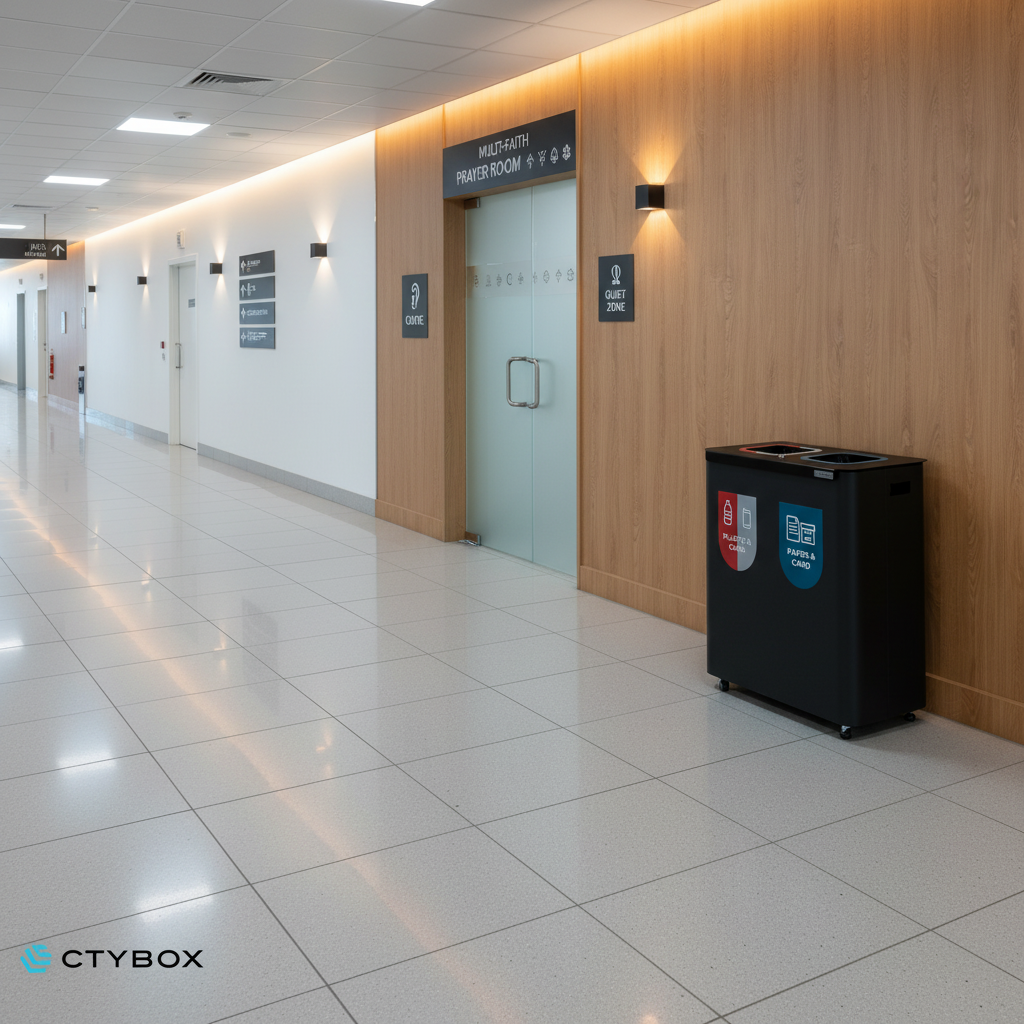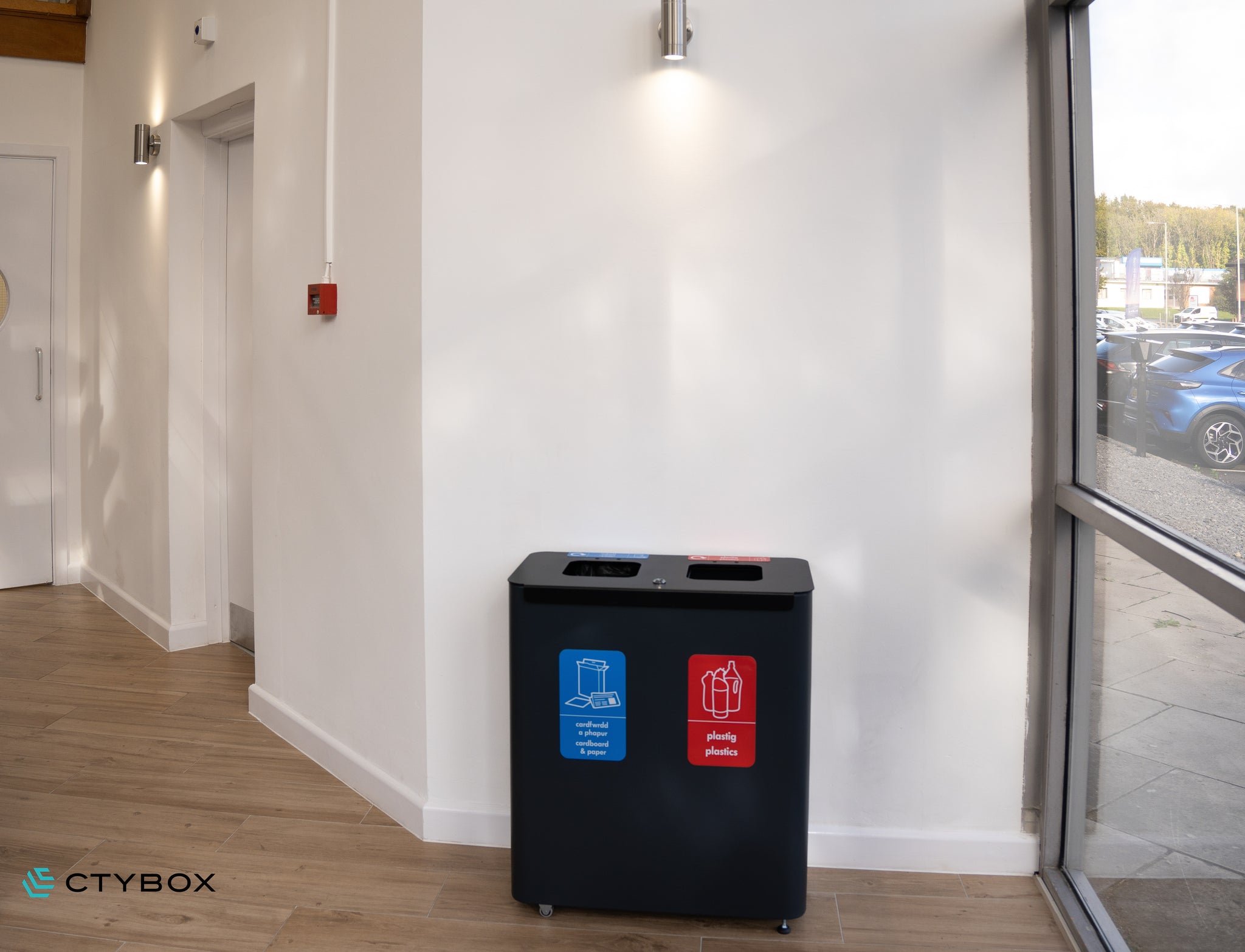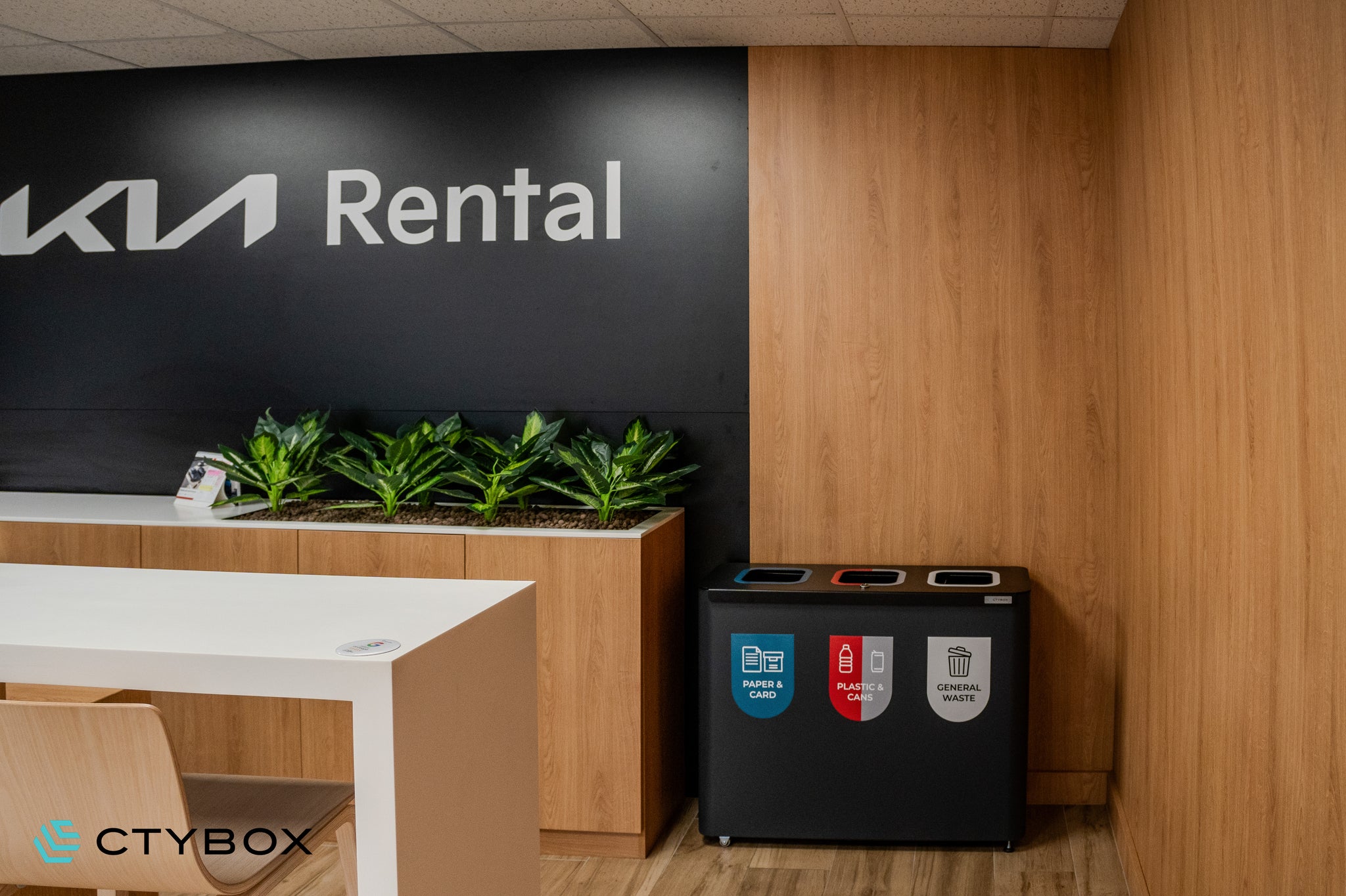 - Stylish and modern looking recycling station, perfect for various environments from offices and recreational spaces to airports and more
