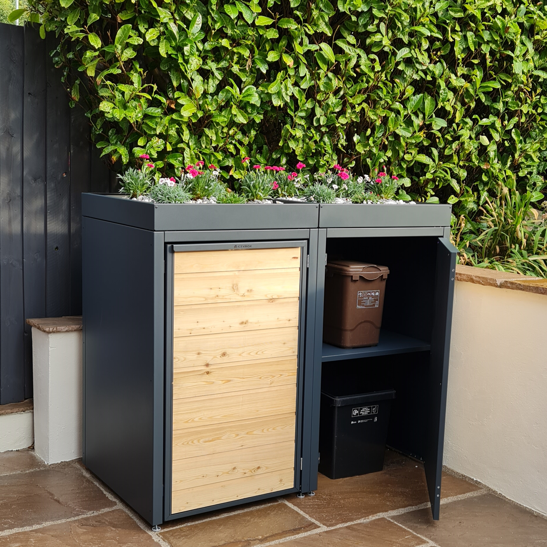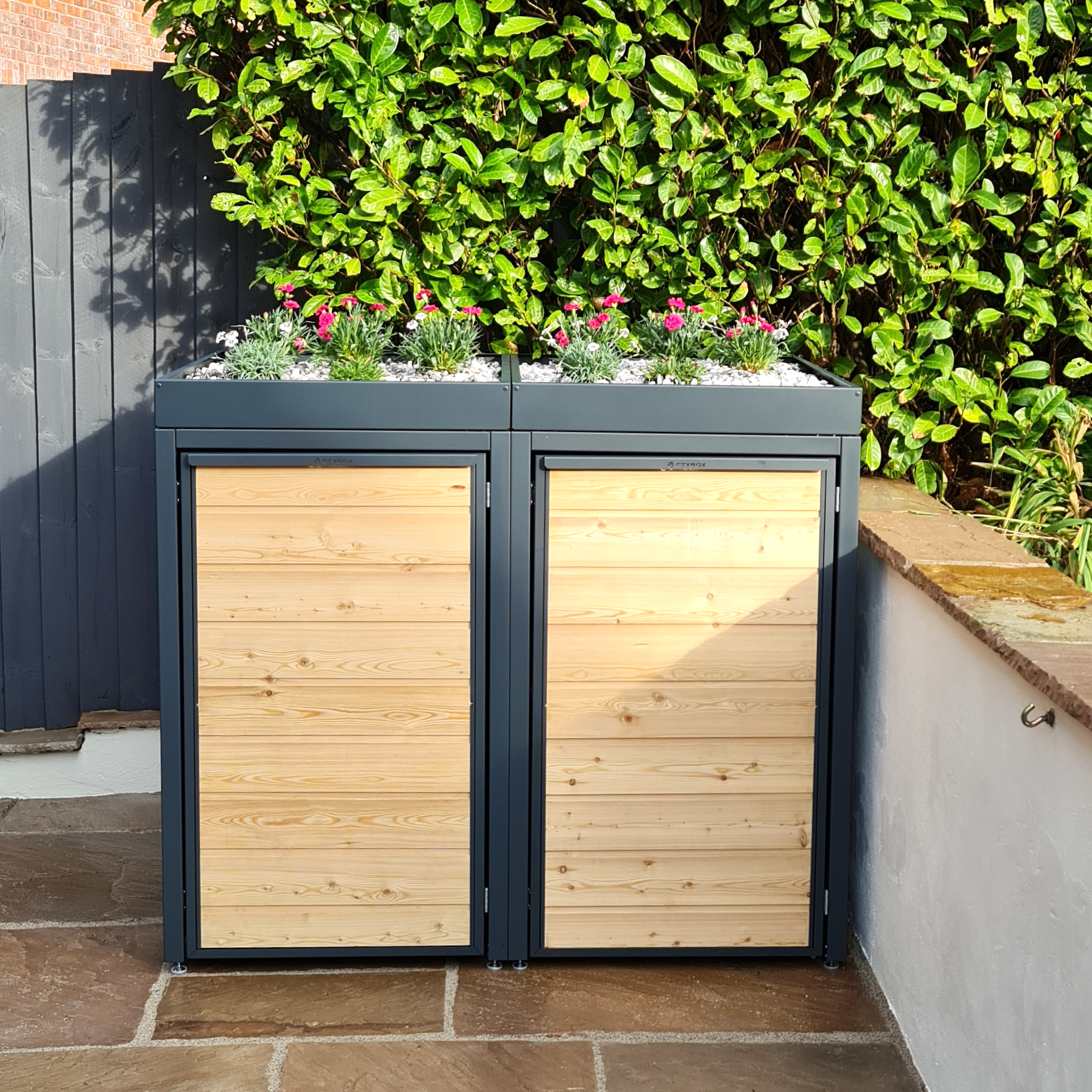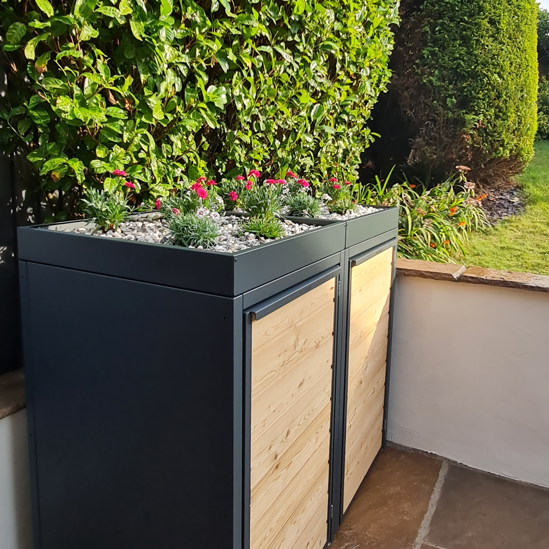 - Modern, attractive alternative to plastic and wooden bin store that degrade quickly outside