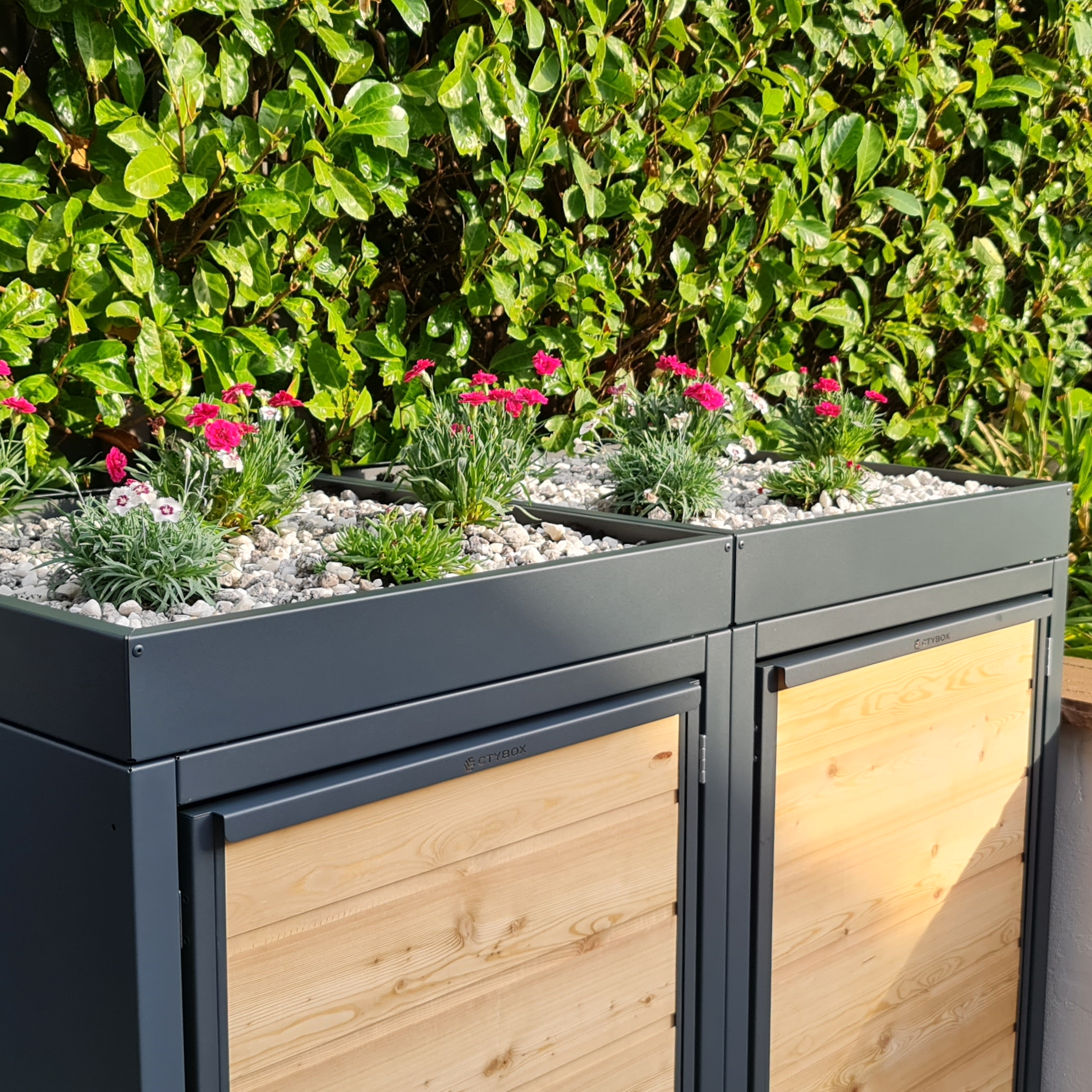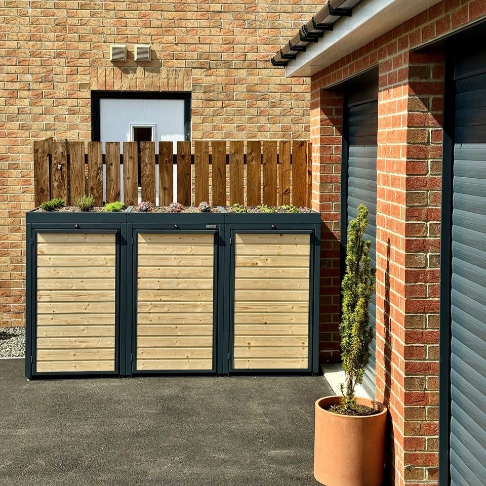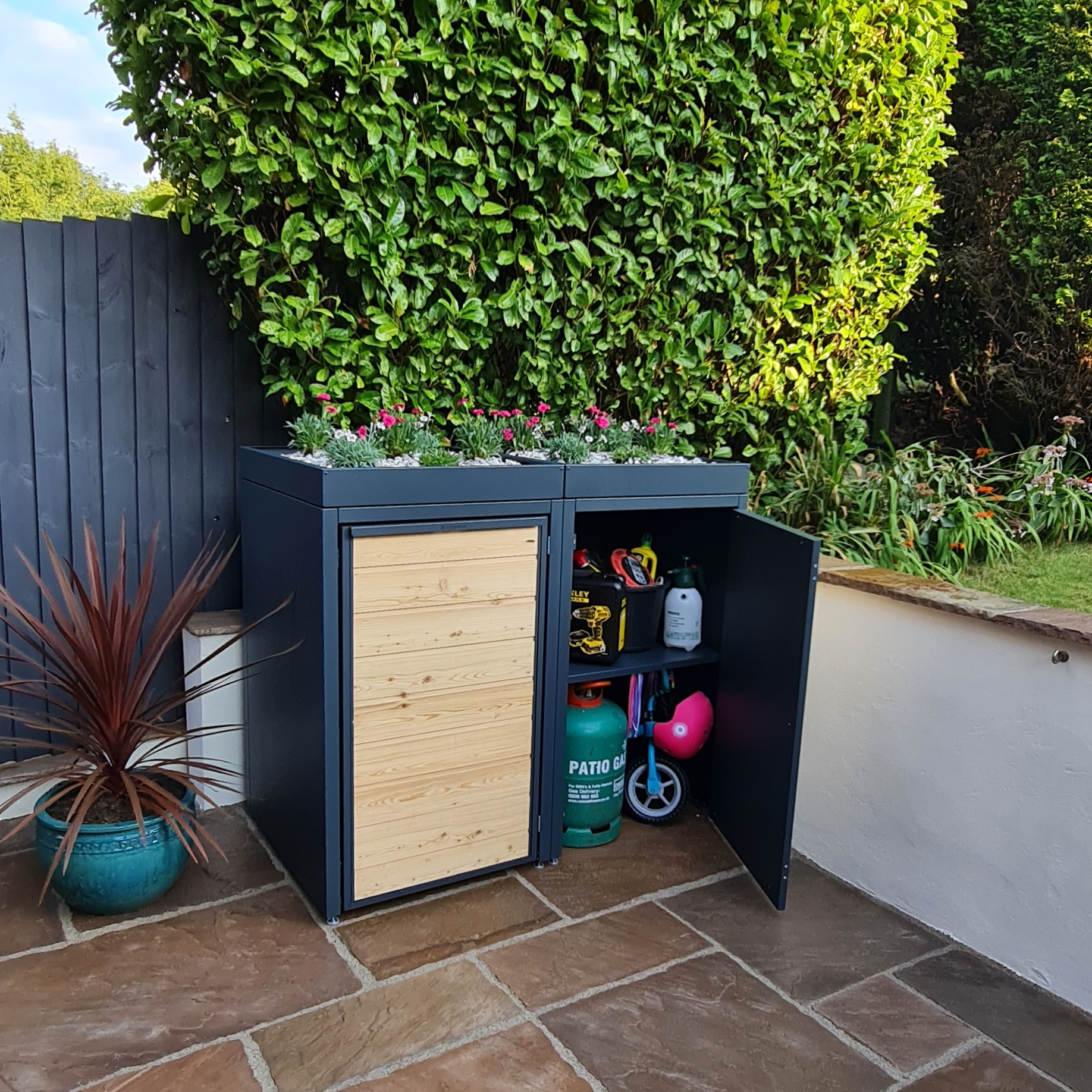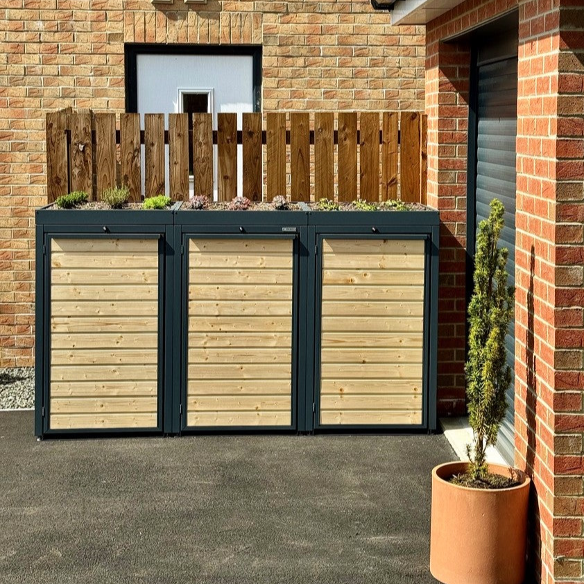 - Modern, attractive alternative to plastic and wooden bin store that degrade quickly outside