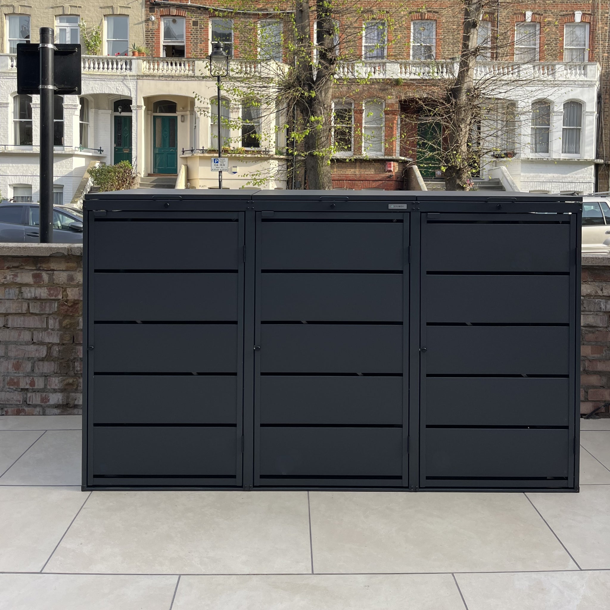 Triple Wheelie Bin Store 240L: Height: 126,5cm Width: 208,5 Depth: 83cm