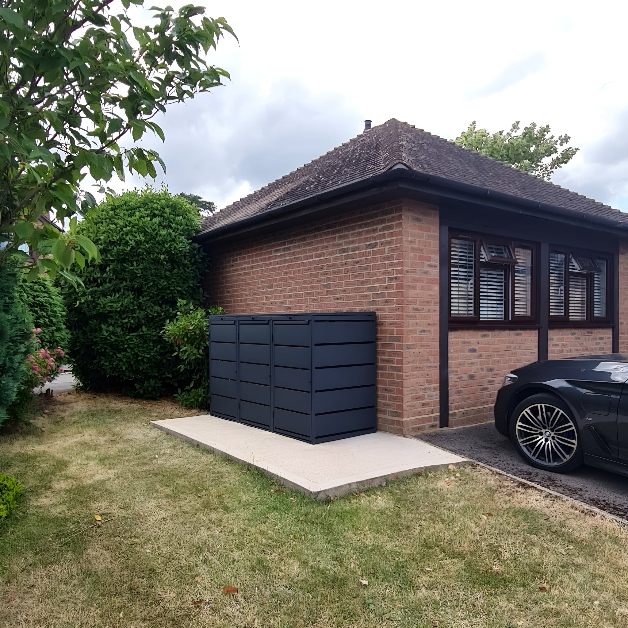 Our MINIMALISTIC bin storage must be set up on an even, flat, hard surface such as concrete, slabs or tarmac. Soft surfaces, such as gravel or grass, are not suitable.