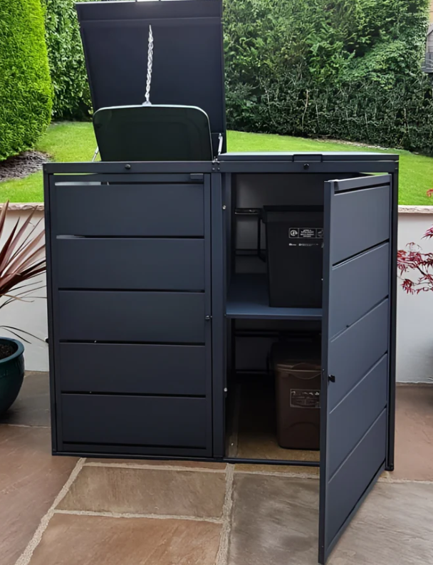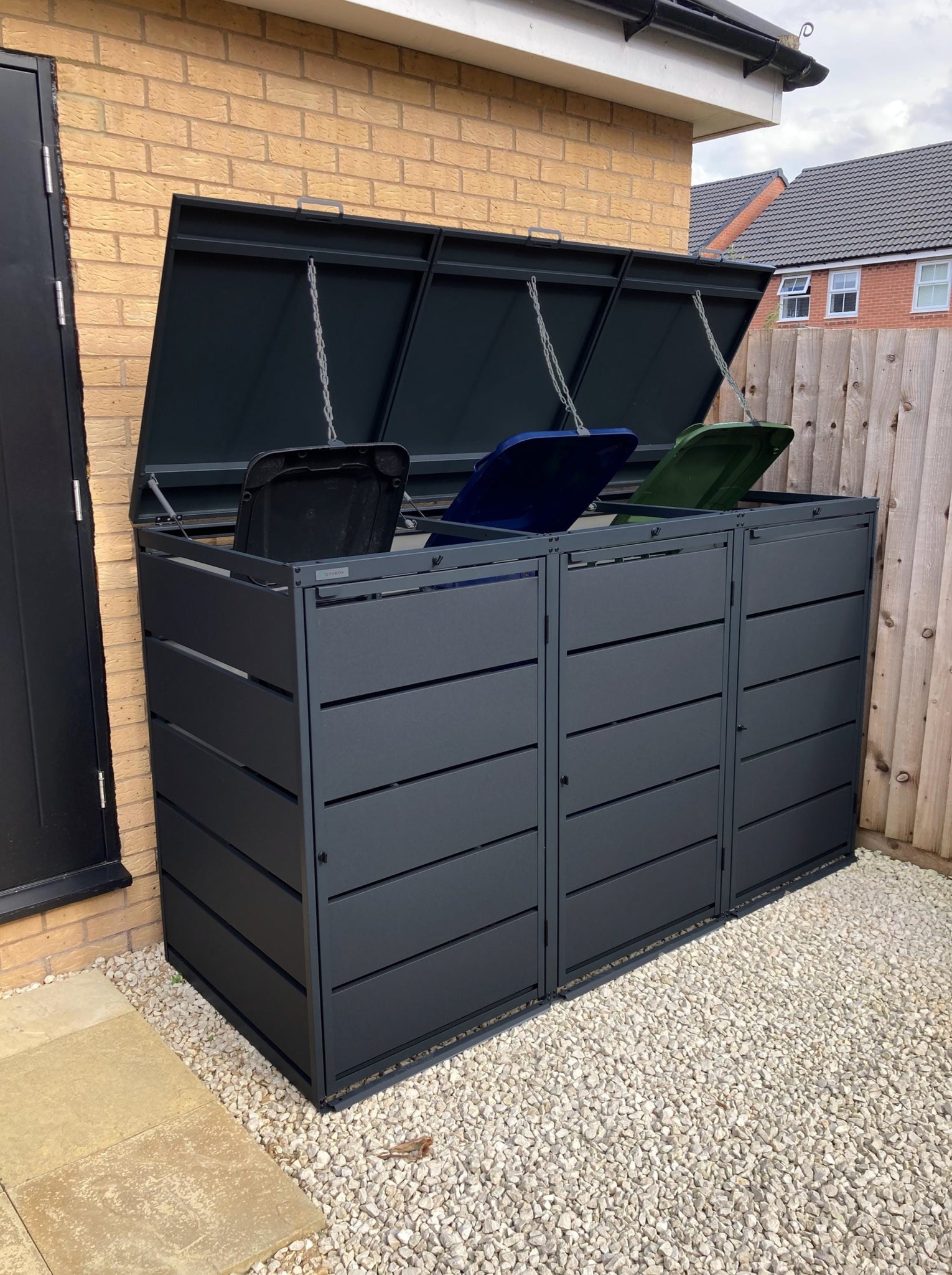 - Modern, attractive alternative to plastic and wooden bin store that degrade quickly outside